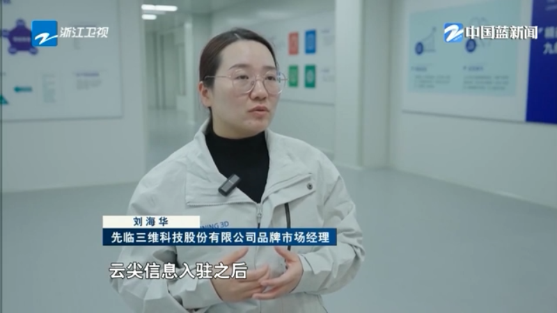 先临三维科技股份有限公司品牌市场经理 刘海华:我们的供应链(团队)经常是飞到各地去寻找供应商,那云尖信息入驻之后,我们的研发团队可以直接跟云尖信息进行面对面地沟通。